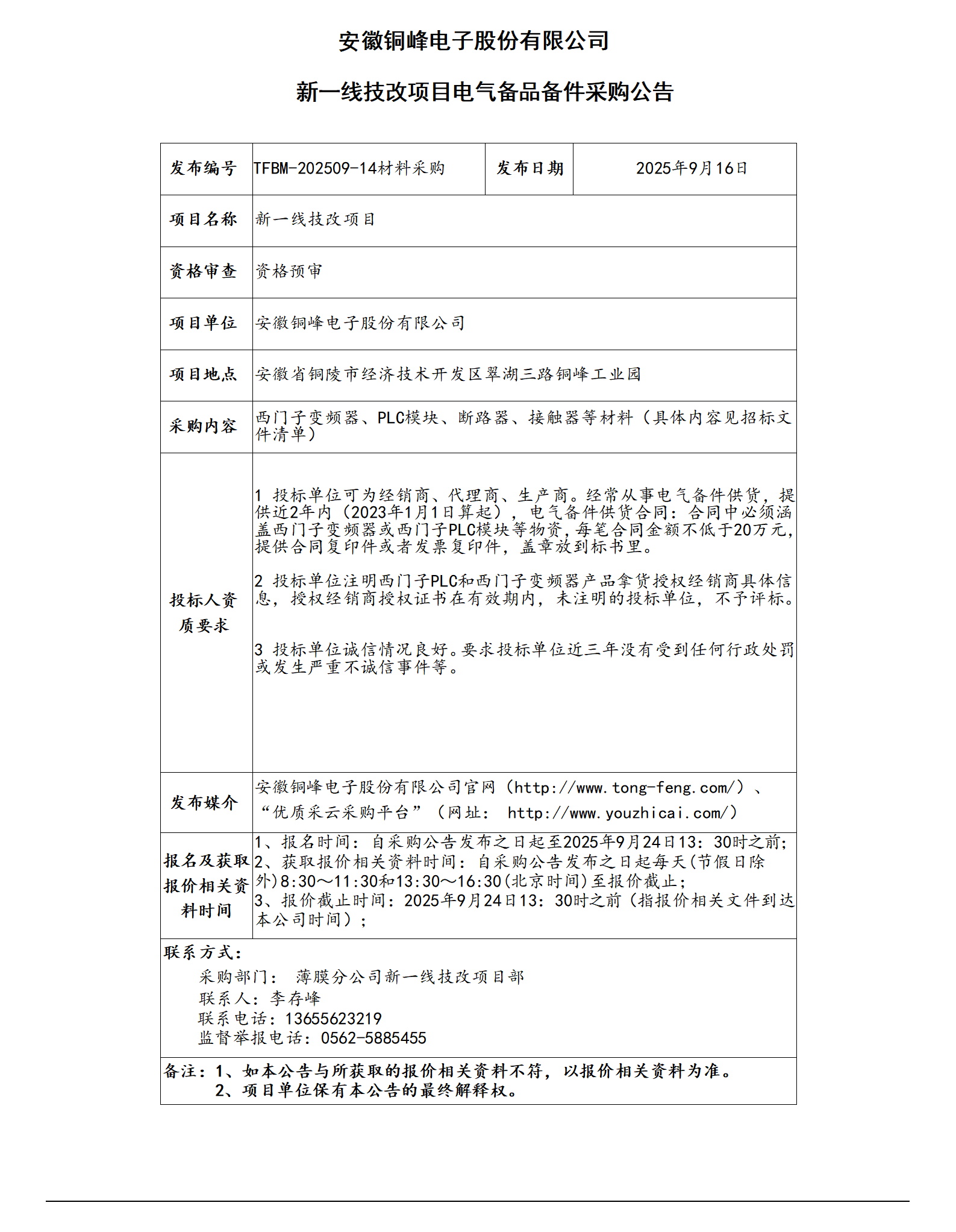 安徽銅峰電子股份有限公司 (新一線技改項(xiàng)目進(jìn)口潤滑油采購公告)_01